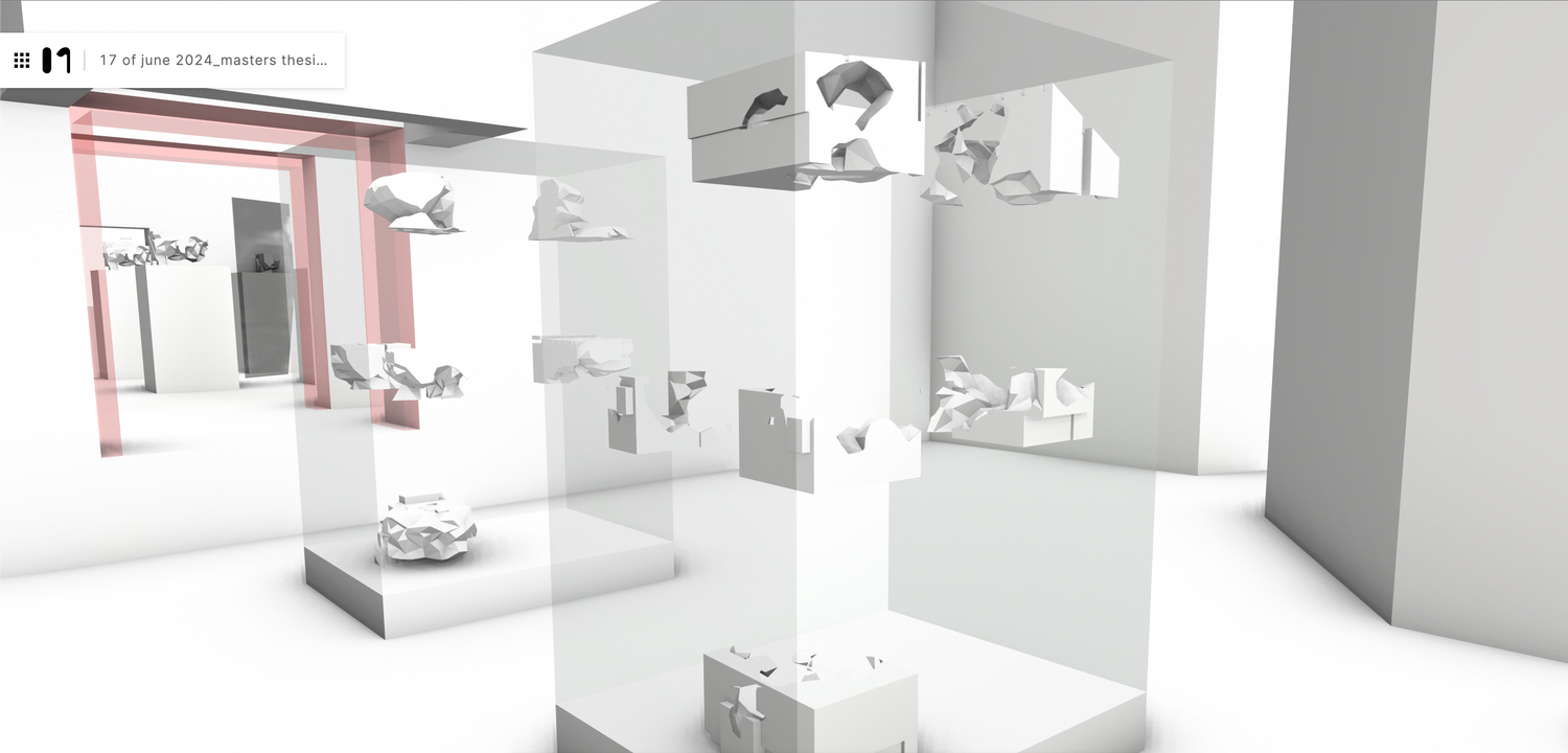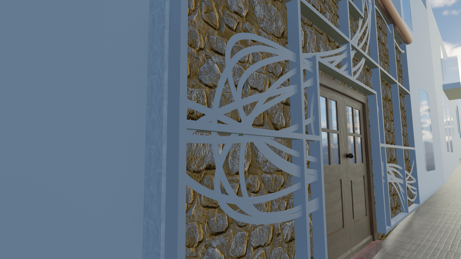the first exhibition in this virtual space shows The House of the (S)cul(p)tures with its panels of the facade, created through the investigation of movement, based on a redesigned single family house to host travelling artists as concept for the Master's Thesis.