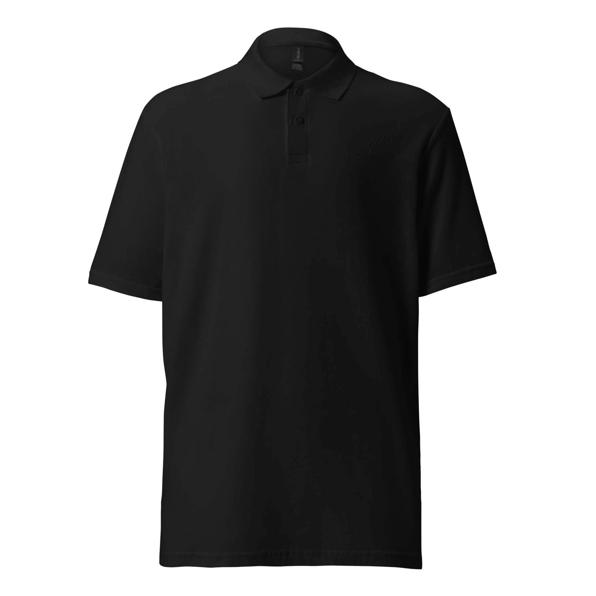 unisex pique polo shirt with black embroidery - personalised with calligraphyc initials
